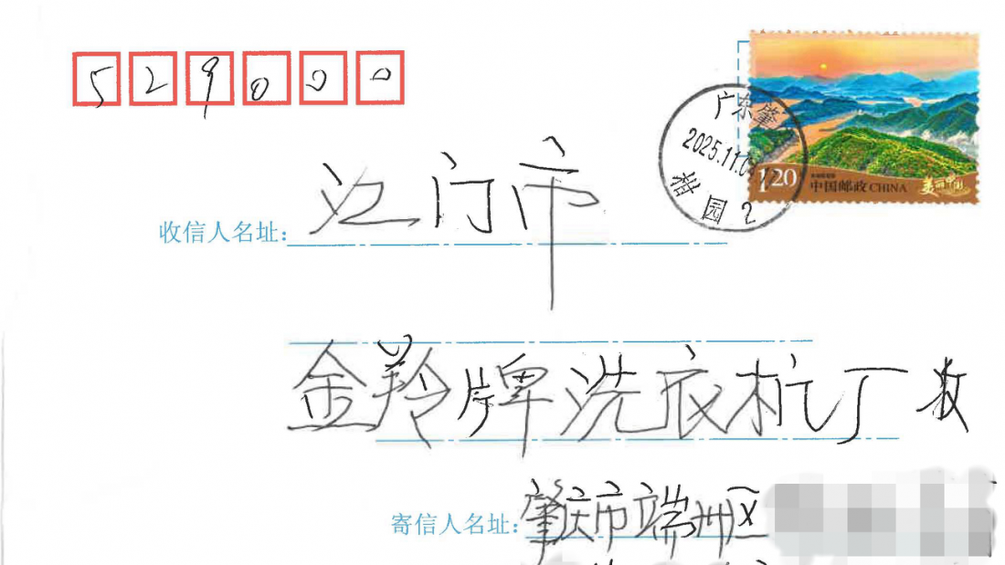 近日,江门市洗衣机厂收到一封没有具体地址、仅写着“江门市金羚牌洗衣机厂”的感谢